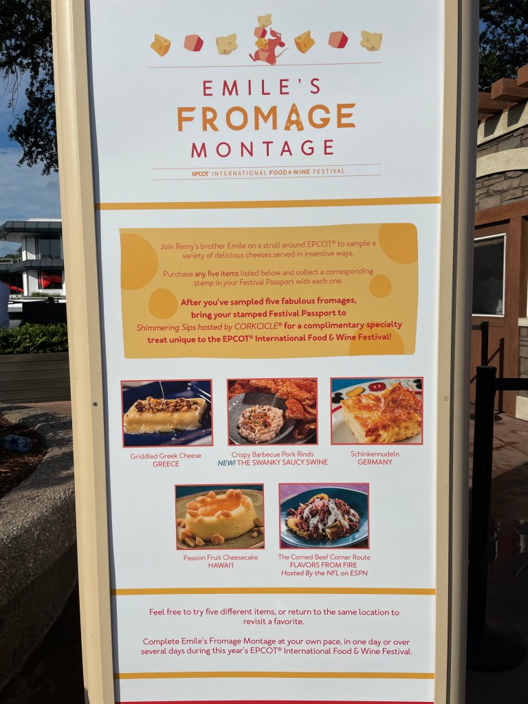 Special Offering – Emile’s Fromage Montage. This special stroll takes you through 5 cheese based dishes at 5 different food kiosks around the festival. Once you obtain all 5 dishes, you receive a stamp in the back of your Festival Passport and can redeem a prize at the Shimmering Sips kiosk! (You do not have to get all 5 dishes in one visit, you can get them during any of your visits to the festival – just keep the same Passport book!)